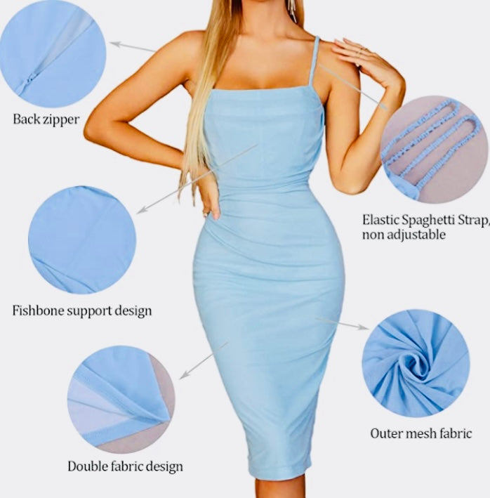 Design:The slip dress features elastic spaghetti straps, ruched, and fishbone. Make this tight dress for women the perfect fit for the curves of your body.