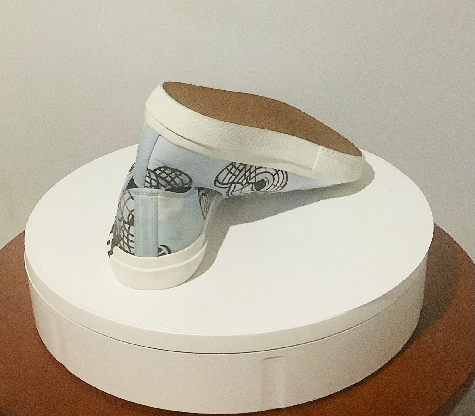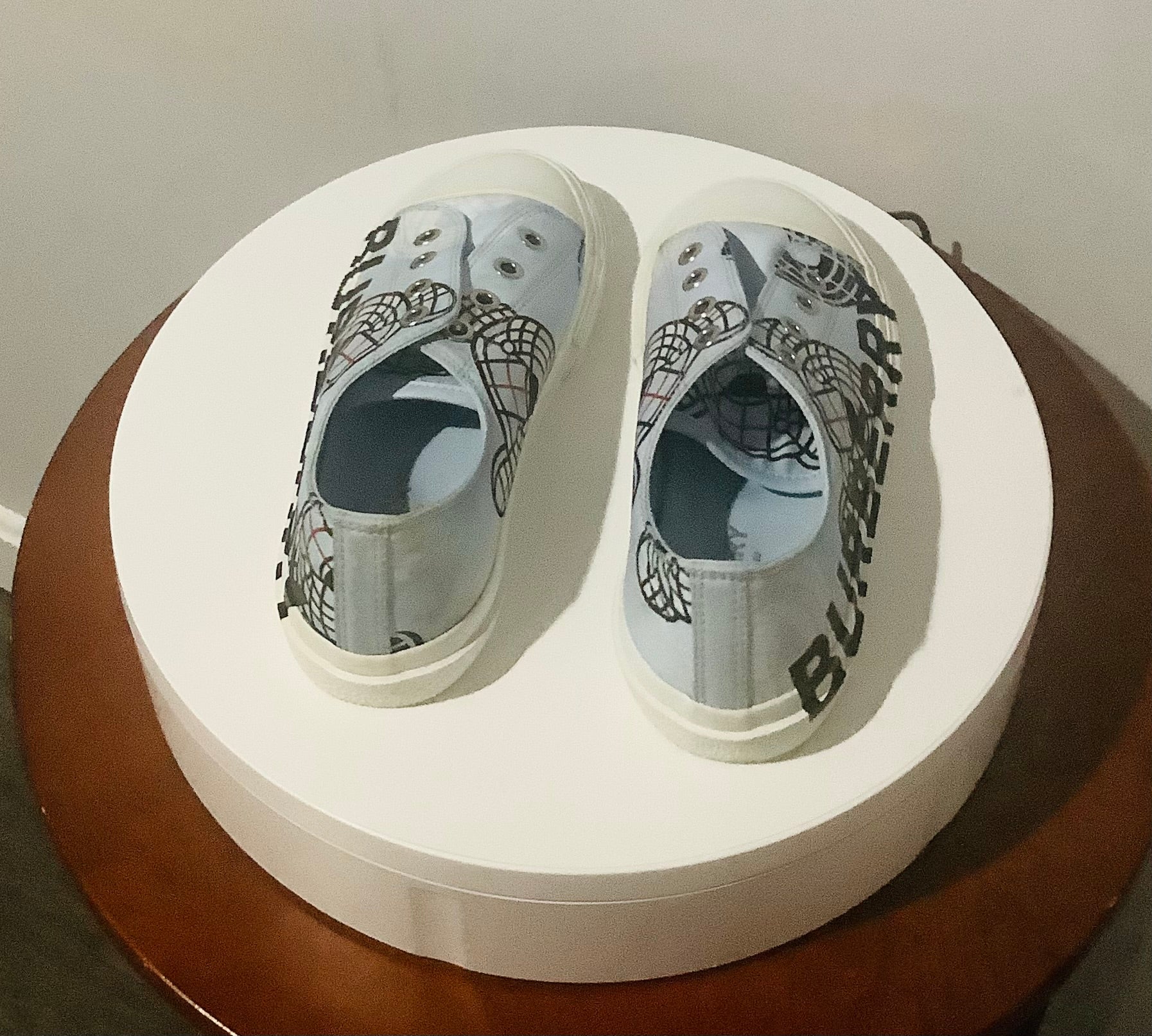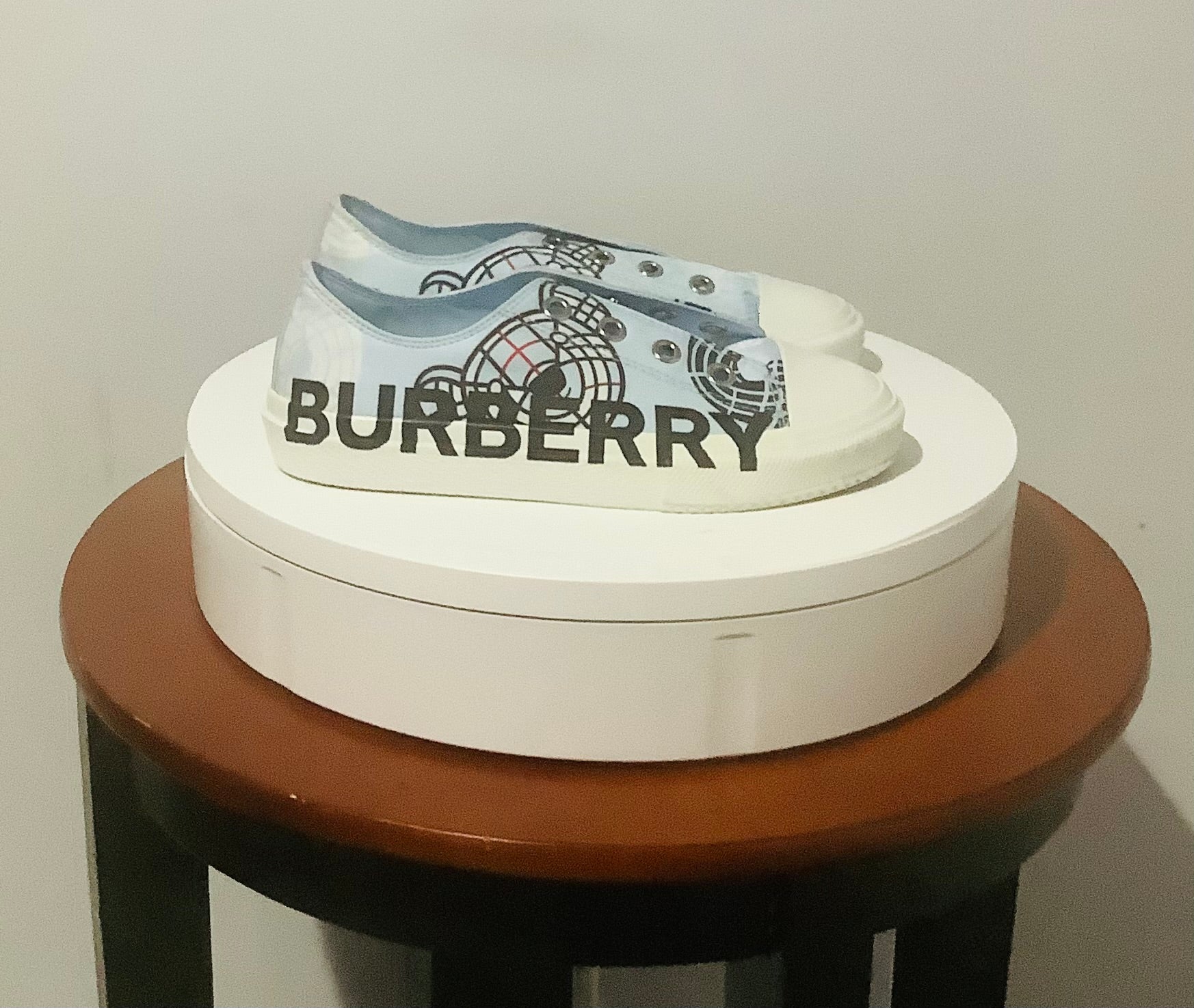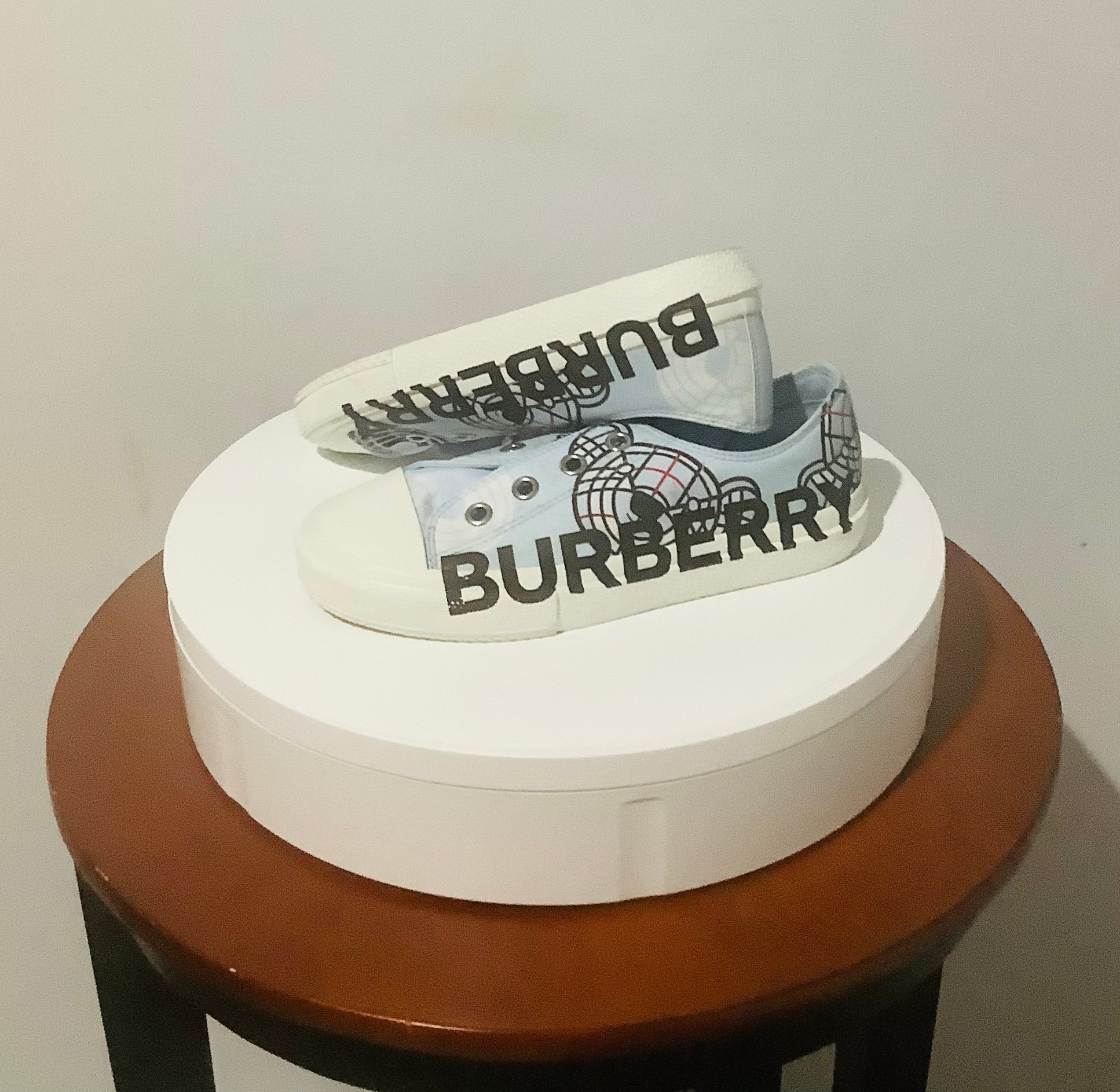 - Burberry "K1 Larkhall" cotton, rubber, and sheep leather sneakers with bear print
