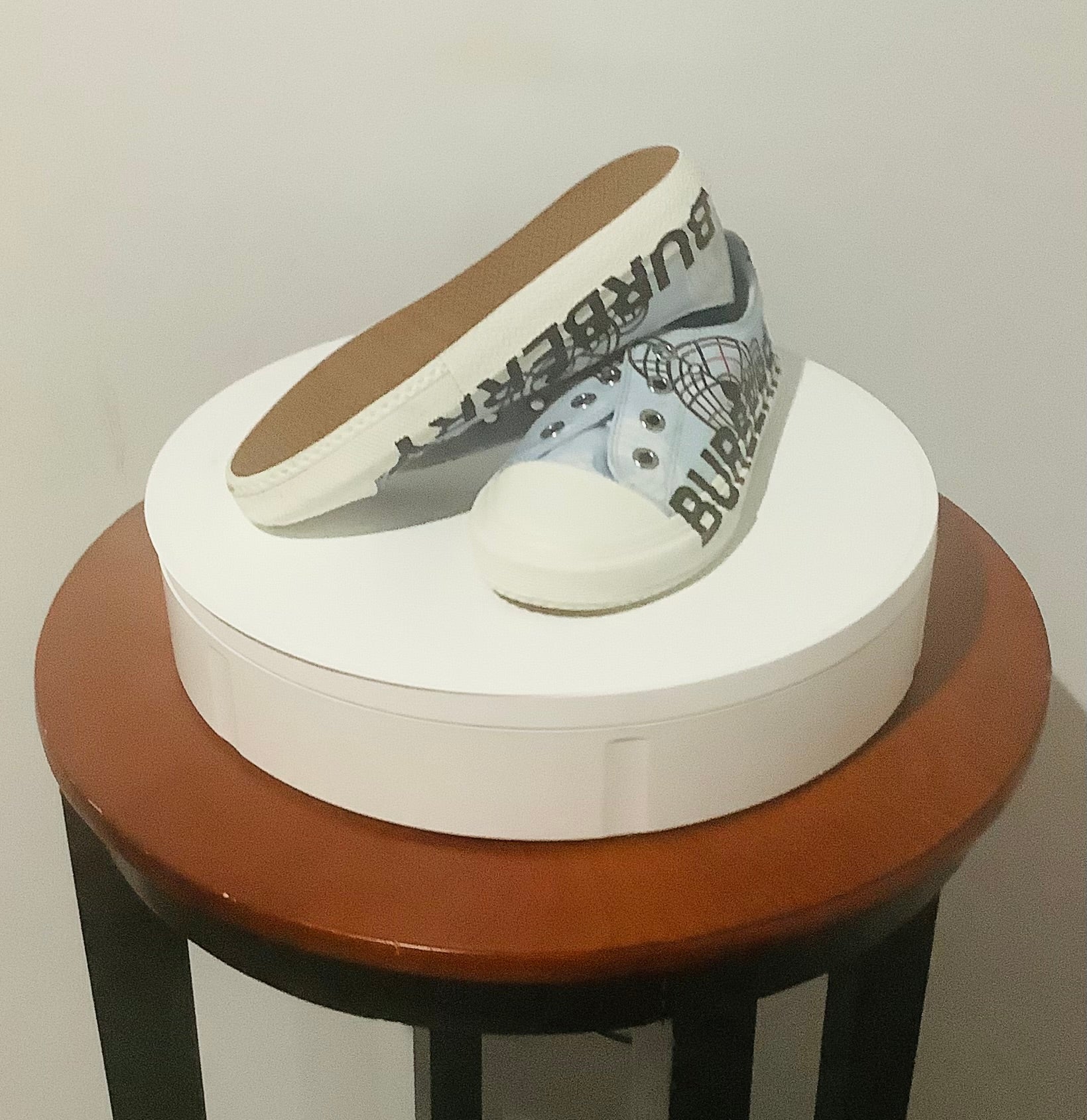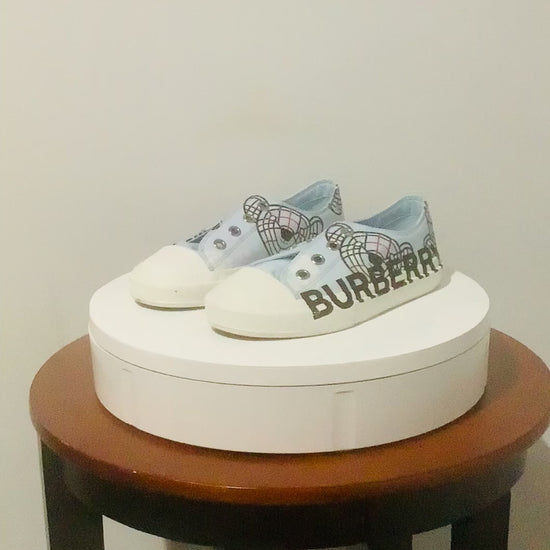 Burberry: Kid's K1 Larkhall Bear-Print Logo Sneakers-Laceless-Pre-Owned