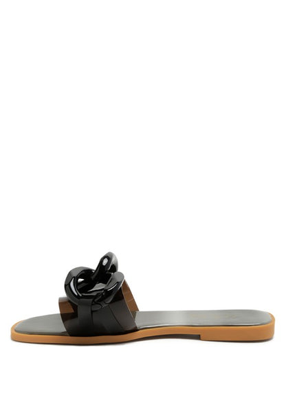 Chain Detail Clear Strap Flats in Square Toe. Adds look to feet, casual all day slides.