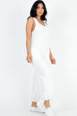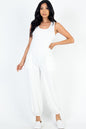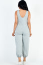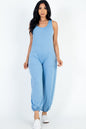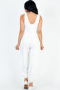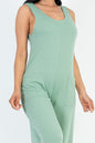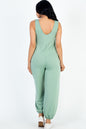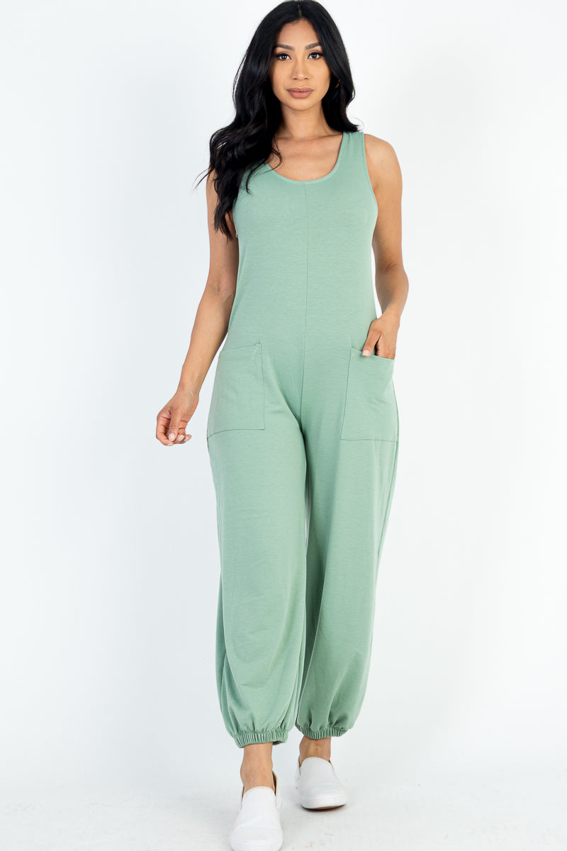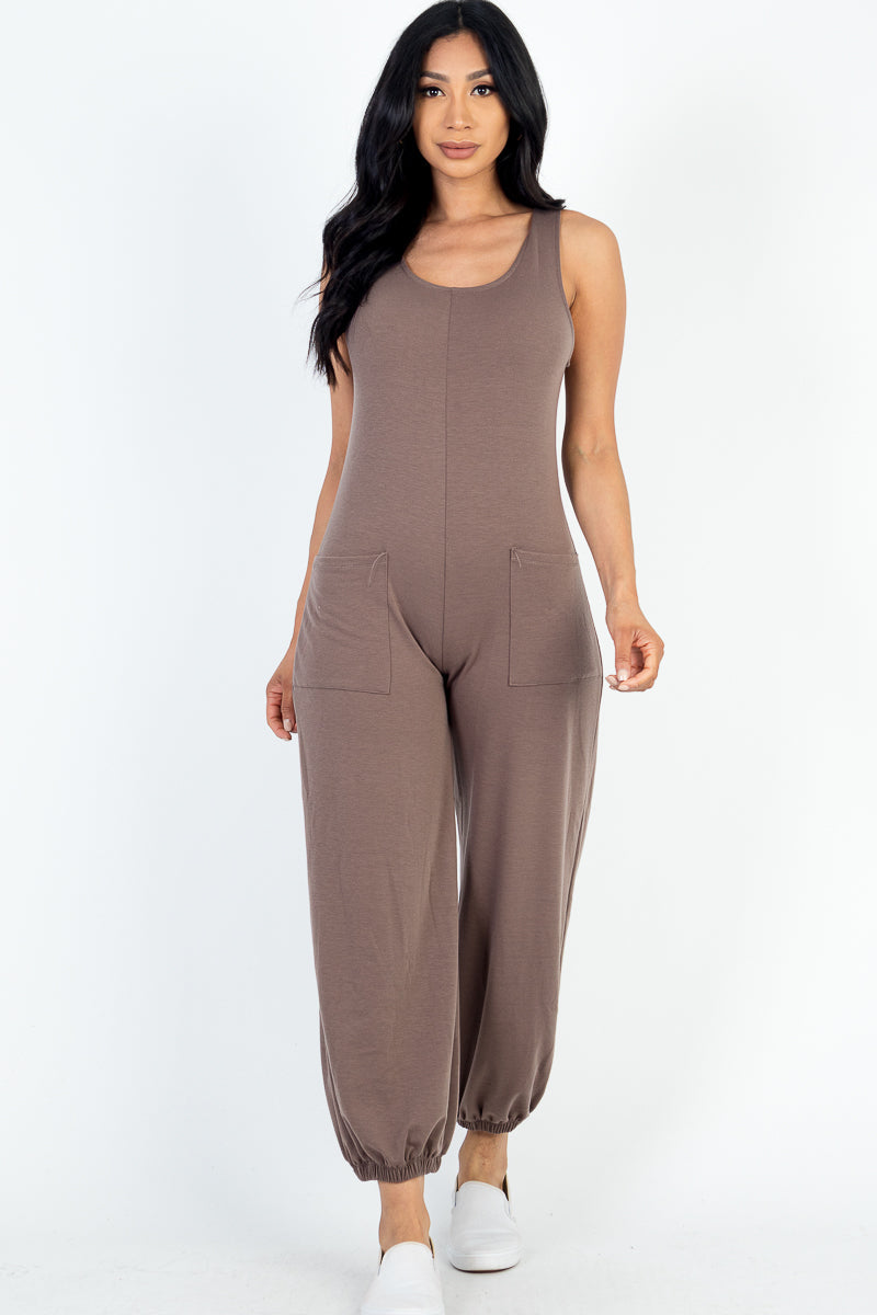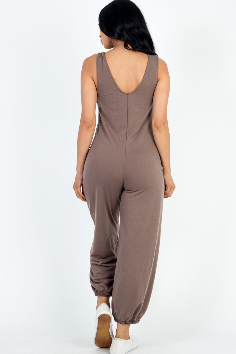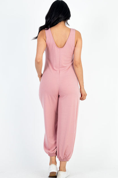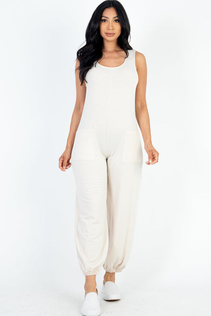 Casual Solid French Terry Sleeveless Scoop Neck Front Pocket Jumpsuit