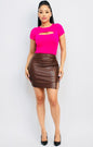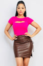 Crafted from a blend of 94% polyester and 6% spandex, this top offers both comfort and stretch. The double-layer design adds dimension to the look, while the round neckline and short sleeves provide a classic silhouette. The front cut-out detail adds a trendy twist, making it a standout piece for any occasion.