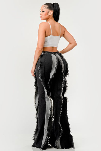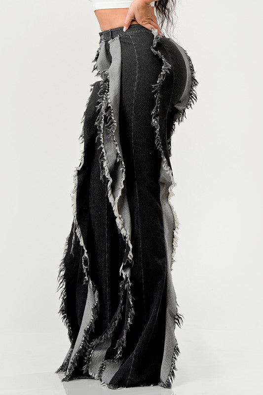 On-Trend Appeal: Stay on top of fashion trends with these on-trend distressed frill jeans. Understand the importance of keeping your wardrobe fresh and relevant, making these jeans a must-have for the fashion-forward woman.