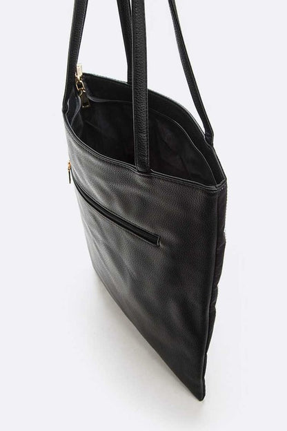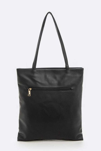 Width - 13.5"Height - 15.5"Handle - 10" DropComposition - Satin, Polyurethane, Rhinestone, Pearl & Mix MetalsSnap ClosureLead & Nickel Compliant