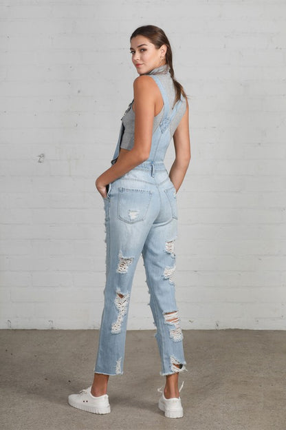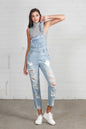 High Waist Heavy Distressed Raw Hem Straight Overalls
