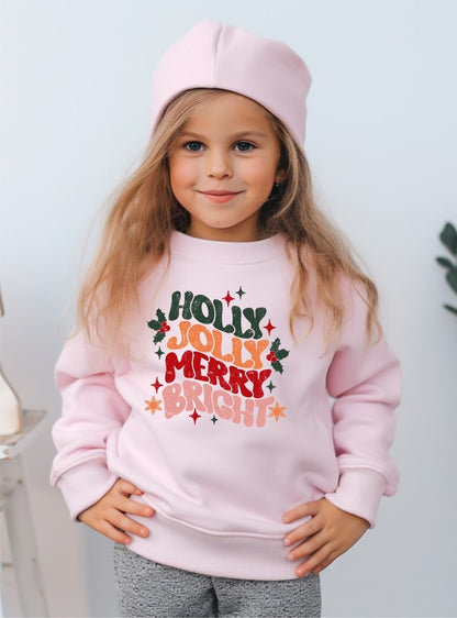 Holly Jolly Merry Bright Toddler Graphic Sweatshirt 7.5 oz., 60/40 cotton/polyester