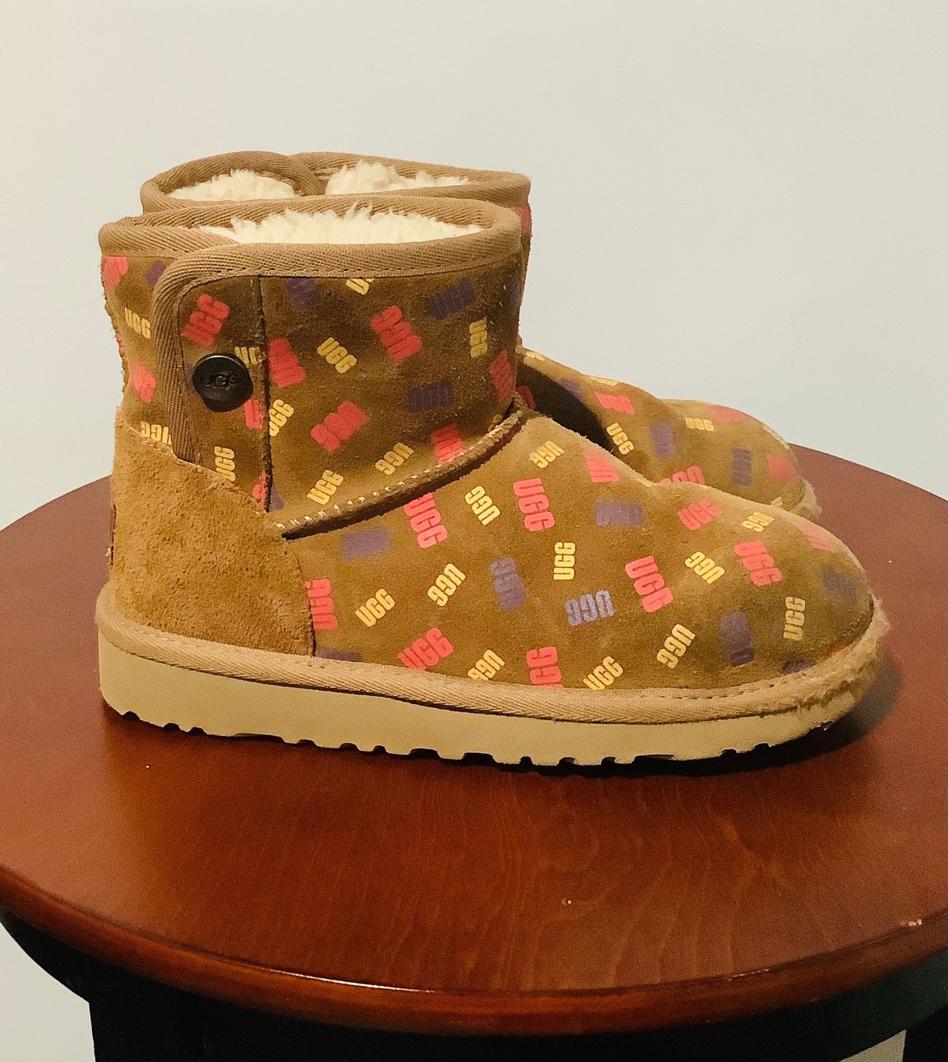 Pre-Owned: Girls UGG K Jona Confetti Logo Boot-Size 1-Used