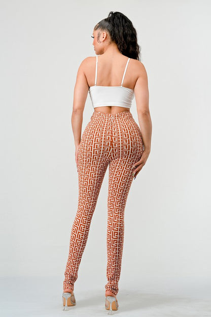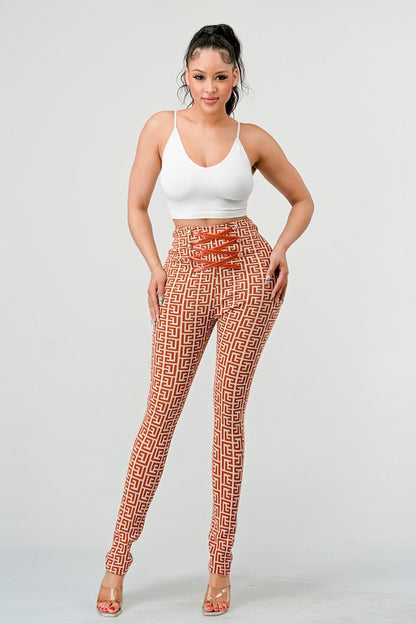 PRINT HIGH WAIST BANDAGE PANTS