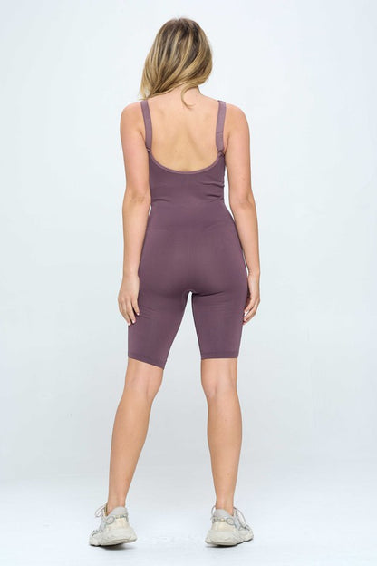 Our Shorty suit takes on your day-to-night schedule like a pro. Designed with flattering contour seaming in a body-hugging fit, this jumpsuit works wonders 'round the clock to keep you cool and collected. Made from our Seamless Fabric , they're designed to move with your body, wick away moisture and keep you cool throughout your entire workout or work day.