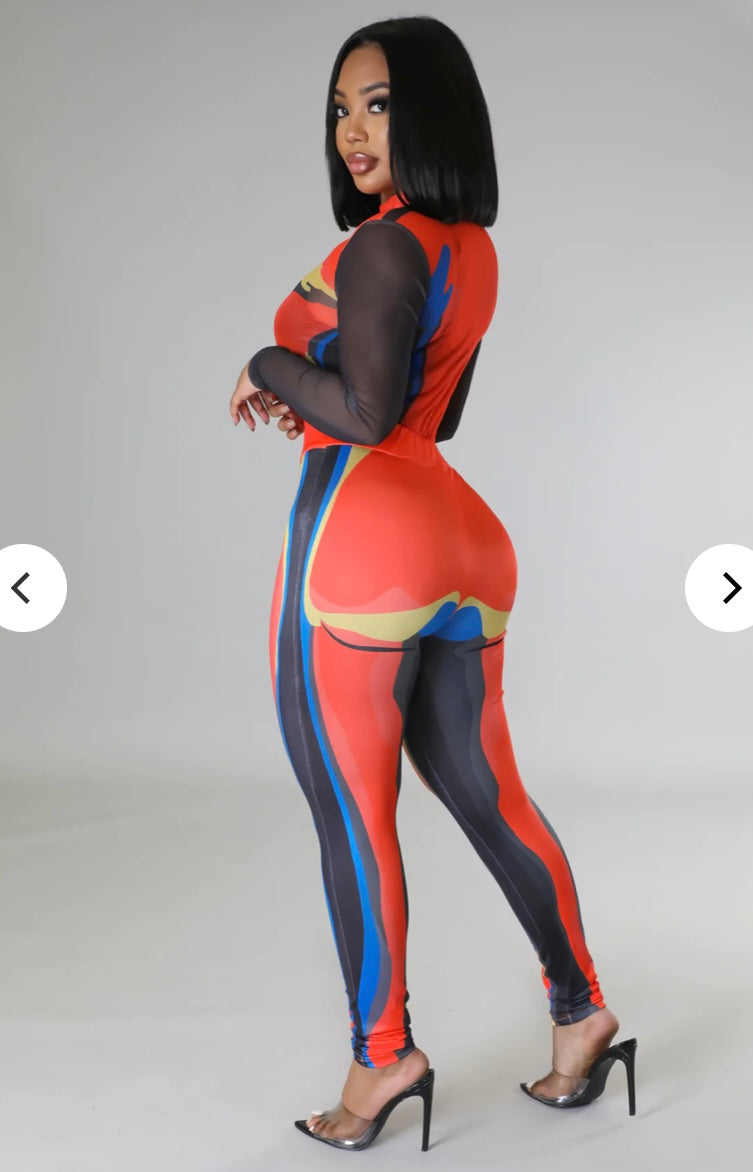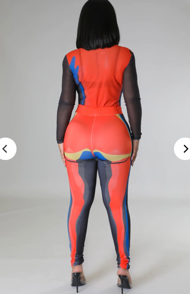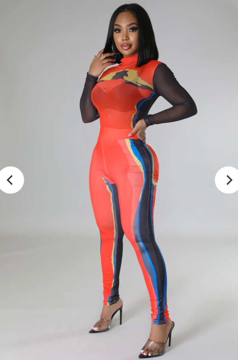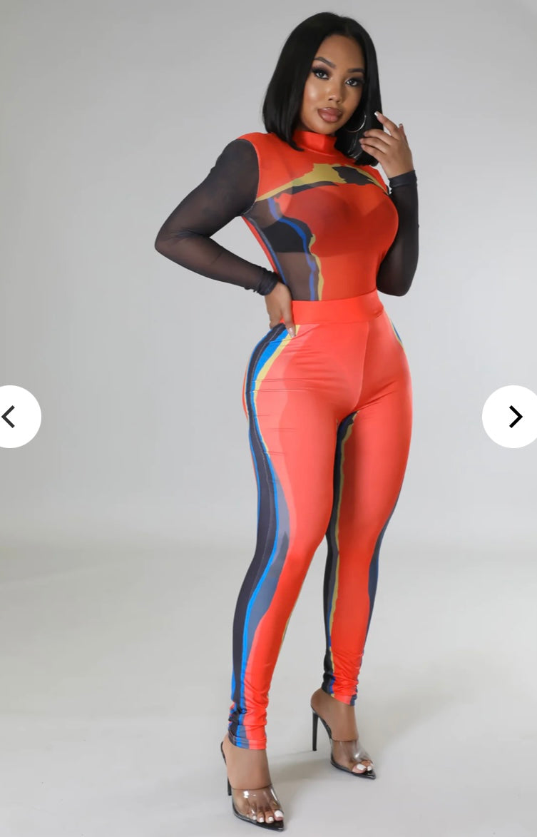 Small / Orange Black ComboShape Of Bodysuit Legging Set