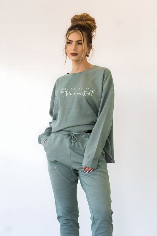 When in Doubt Beach Take a Vacation Fleece Crewneck Sweatshirt